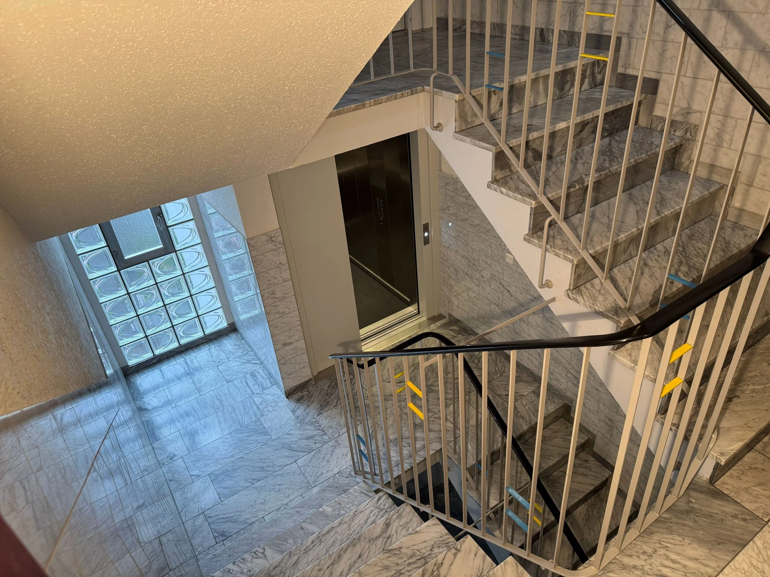 Ein Kellerraum, eine gemeinschaftliche Waschküche, ein Gemeinschaftsstellplatz, das gepflegte Marmor-Treppenhaus sowie ein Spielplatz mit Schachfeld und Tischtennisplatte in der Anlage runden dieses besondere Wohngefühl ab.